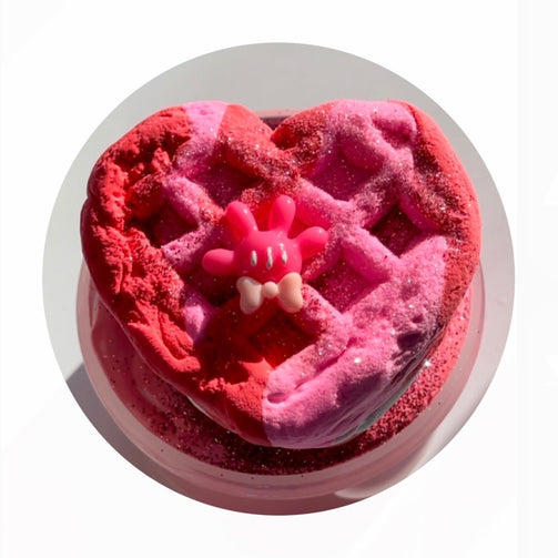 Welcome to our shops VALENSLIME Collection! This Disney-inspired delight will get your heart singing! May we present Mickey N Minnie R Waffley Cute, which begins with a swirled two-toned thick slay base with clay mouse sprinkles and heart clay sprinkles on the bottom and a glittery glow on top. The base is scented like waffles, strawberries, and vanilla ice cream but please remember: it is not edible! The WANT IT and NEED IT sizes each come with ONE red and pink clay waffle heart ice cream sandwich for incredible inflation and extra ASMR and ONE adorable mouse glove charm!