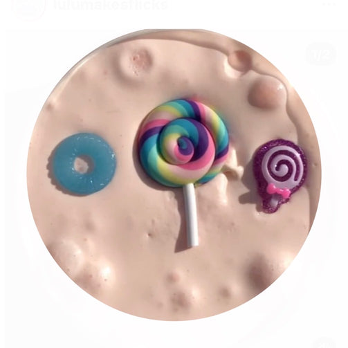 W.T.F. What The Fluff is here to satisfy your thick and fluffy needs! This wood glue hybrid texture is totally unique with ingredients that come together to create a color-changing, lollipop and tart candy scented DREAM! Both the WANT IT and NEED IT sizes come with 3 random candy charms (a lifesaver, a lollipop, and a baby pop) and is stretchy, holdable, inflating, and creamy too!